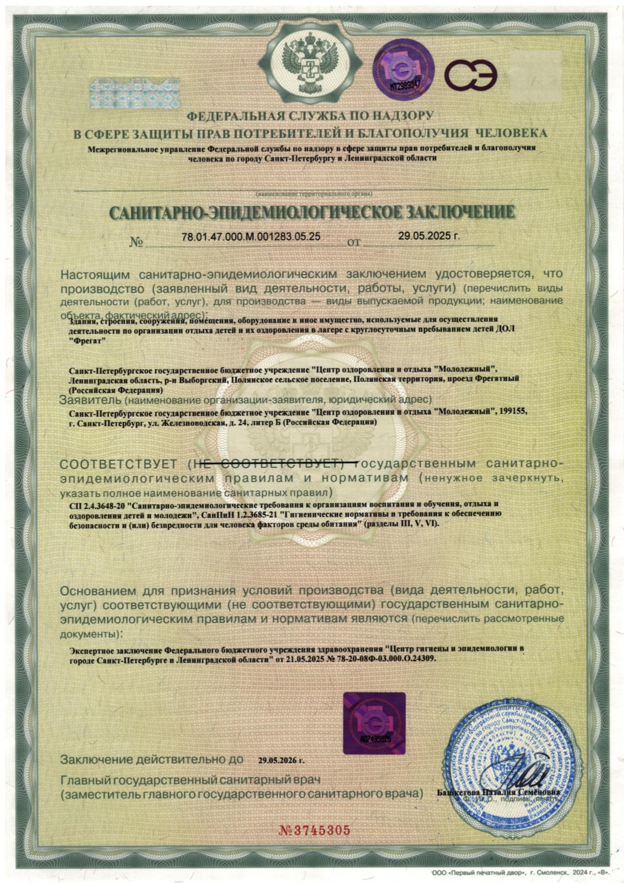 Заключения о возможности открытия детского оздоровительного лагеря «Фрегат»
