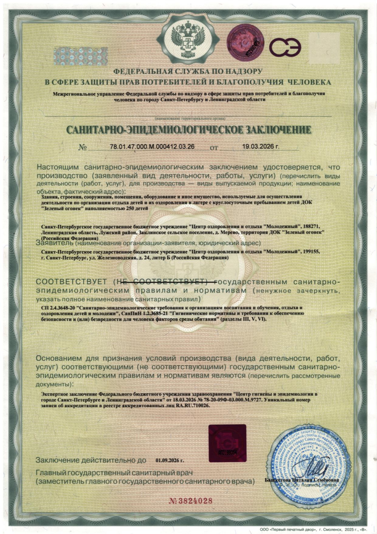 Заключения о возможности открытия детского оздоровительного комплекса «Зелёный огонёк»