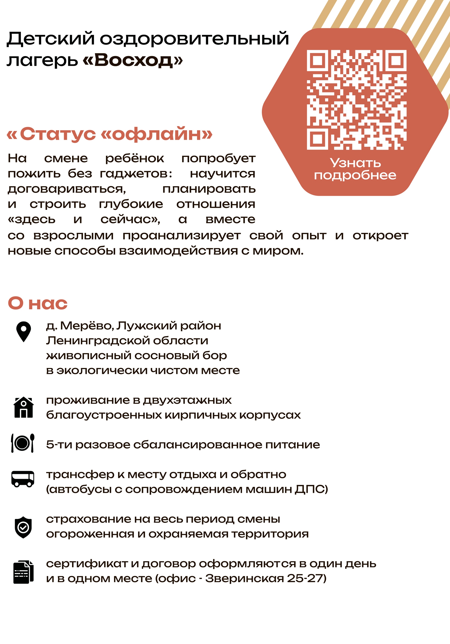 На смене ребёнок попробует пожить без гаджетов: научится договариваться, планировать и строить глубокие отношения «здесь и сейчас», а вместе со взрослыми проанализирует свой опыт и откроет новые способы взаимодействия с миром.